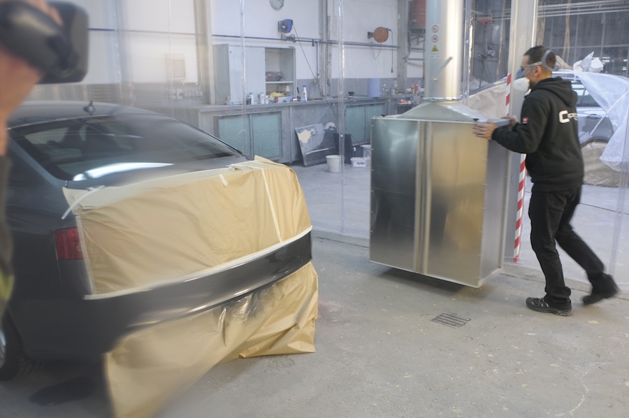 - Die Anlage gehört aufgrund Ihrer geringen Schadstoffmengen beim Spot Repair und da sie im intermettierenden Betrieb arbeitet, zu den nicht genehmigungspflichtigen Anlagen.